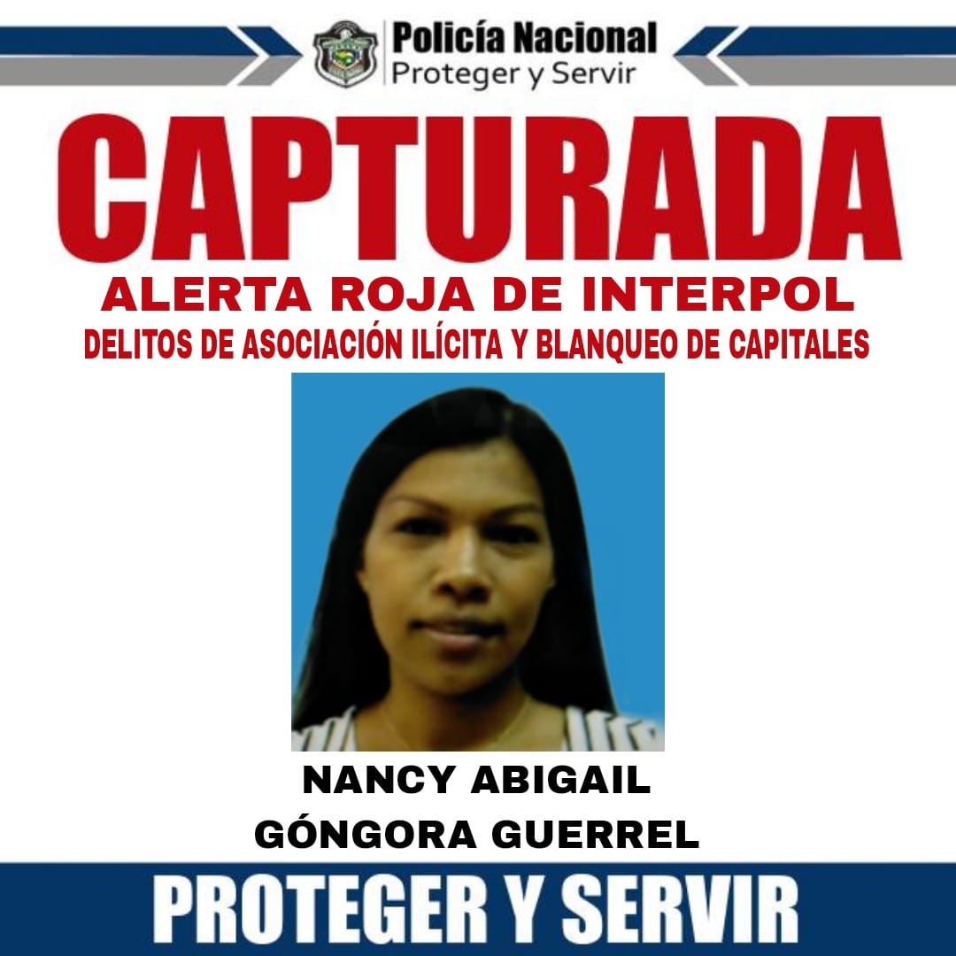 Mediante una labor conjunta entre la Policía Nacional y las autoridades policiales de la hermana República de Costa Rica, se da con la aprehensión en el sector de Escazú, de Nancy Abigail Góngora Guerrel, esposa de Jorge Rubén Camargo Clarke, alias «Cholo Chorrillo».
