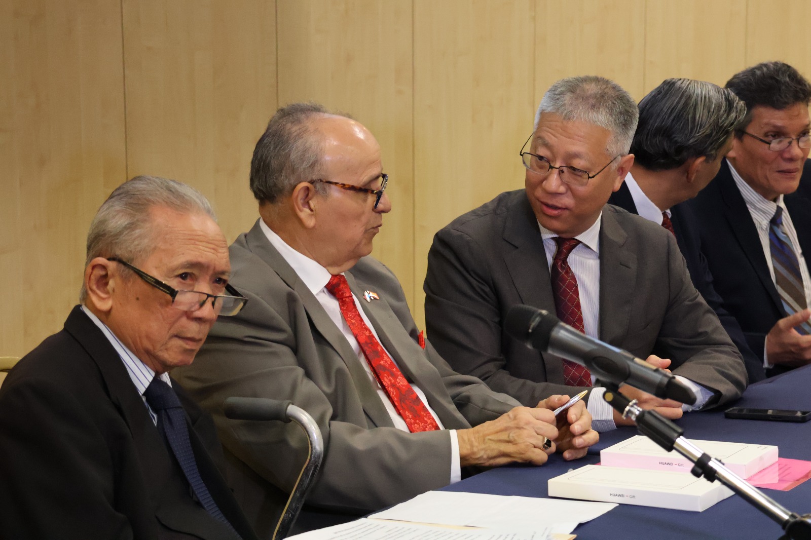 El encuentro contó con la presencia del señor Embajador de la República Popular China, Wei Qiang; el Doctor Yuan Dongzhen, profesor e investigador titular de la Academia China de Ciencias Sociales; el Licenciado Eddie Tapiero, reconocido escritor y economista panameño; y el señor Roberto Montañez, presidente del Centro de Estudios Estratégicos Asiáticos de Panamá.