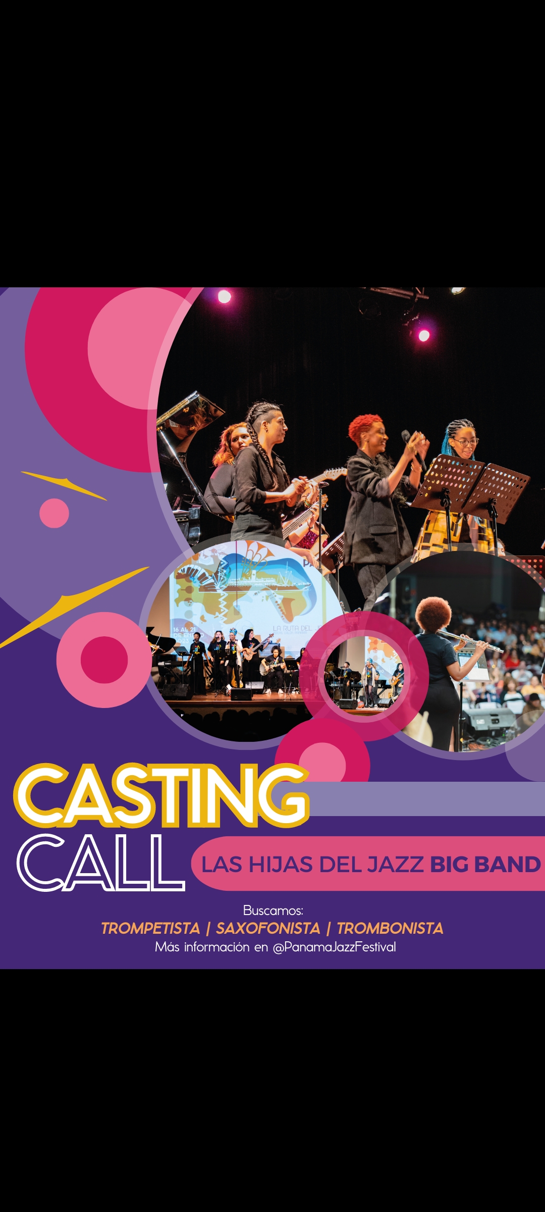 Las seleccionadas serán contactadas para una entrevista virtual y deberán estar disponibles del 2 al 14 de enero 2024 para ensayos y durante el Panama Jazz Festival del 15 al 20 de enero del 2024.