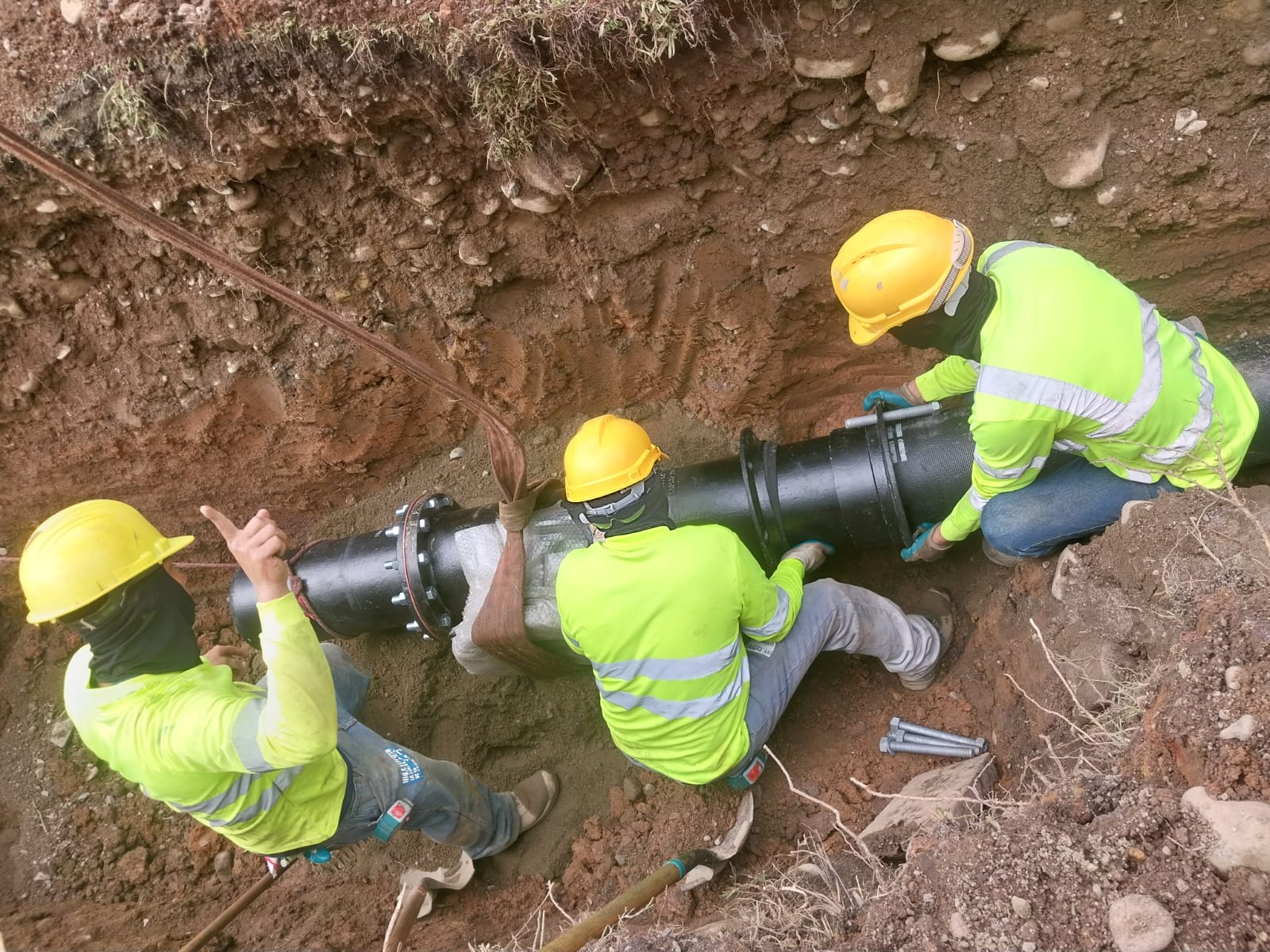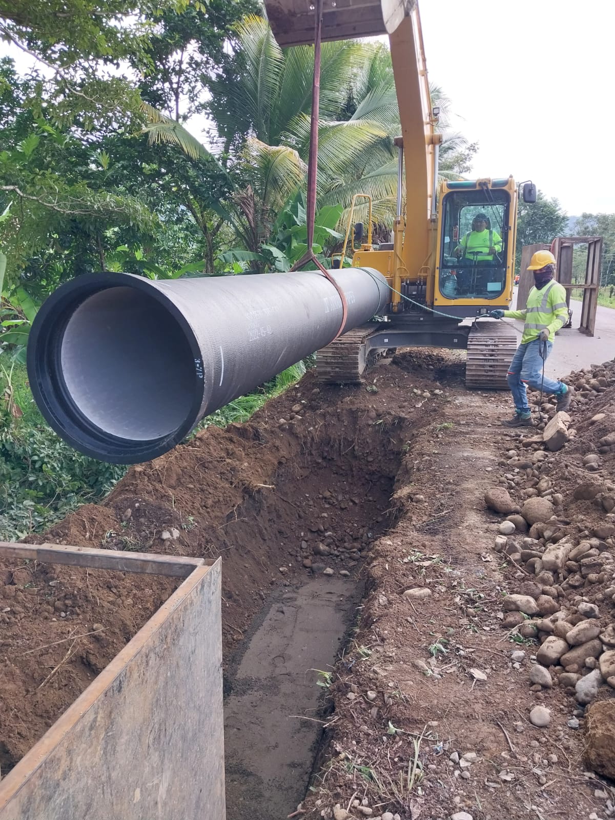 Entre los adelantos de la construcción de la obra se ha realizado excavación de zanja e instalación tubería de hierro dúctil potable de 10”, 16” y 24” pulgadas. Colocación de entibados de 1.50 m en adelante para evitar posibles desmoronamientos.
