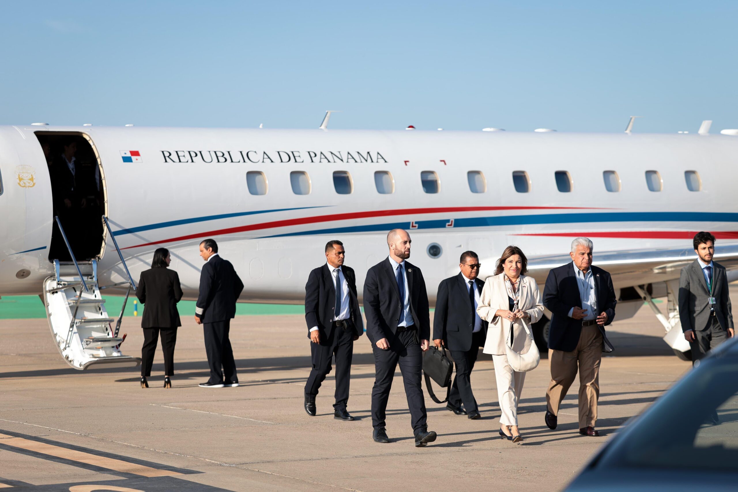 El Mandatario panameño llegó a Sevilla acompañado de la Primera Dama, Maricel Cohen de Mulino; el canciller, Javier Martínez Acha; y la secretaria de Asuntos Económicos, Kristelle Getzler.
