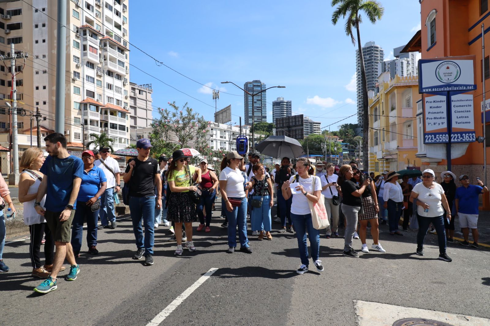 La travesía inicio en el área de Bella Vista y estuvieron presentes representantes de la Sociedad Panameña de Ingenieros y Arquitectos, Policía Nacional, el Grupo Modern Pty, guías turísticas, medios de comunicación y el público interesado en conocer nuestras edificaciones protegidas por el Plan Local de Ordenamiento Territorial (PLOT).
