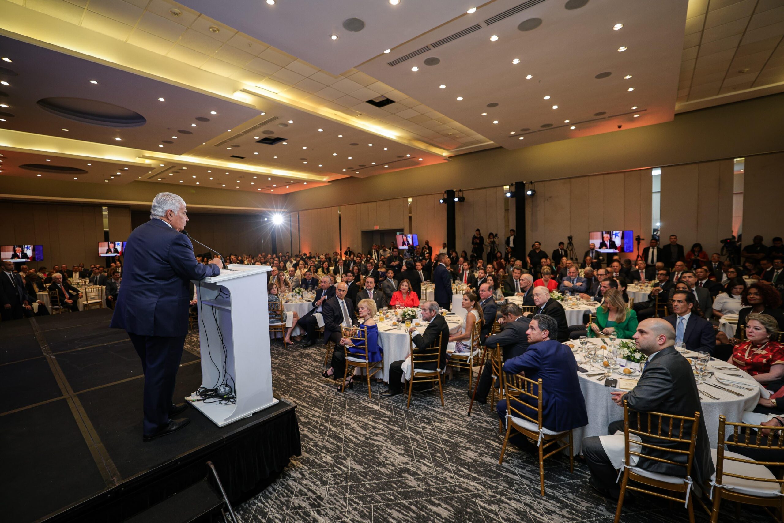 Ante más de mil miembros de la Cámara de Comercio, Industrias y Agricultura de Panamá, que se congregaron para la instalación de la nueva junta directiva del gremio, con la reelección de Juan Arias, Mulino les felicitó por una gestión que combate la corrupción permitiendo