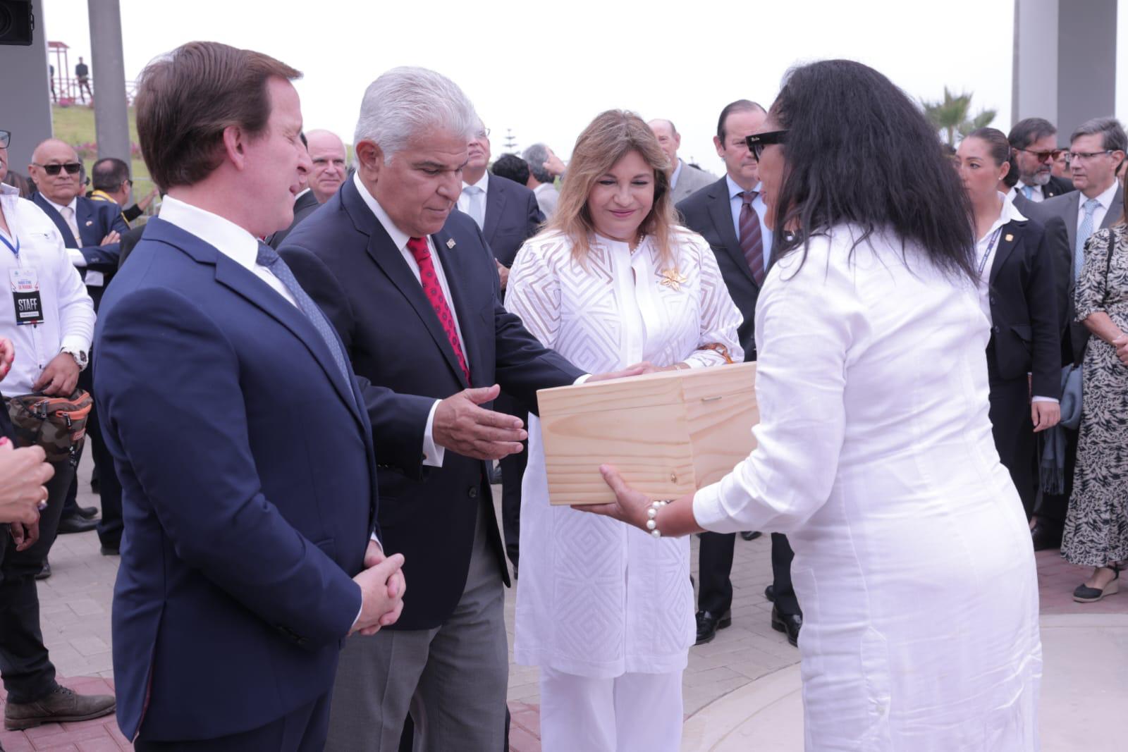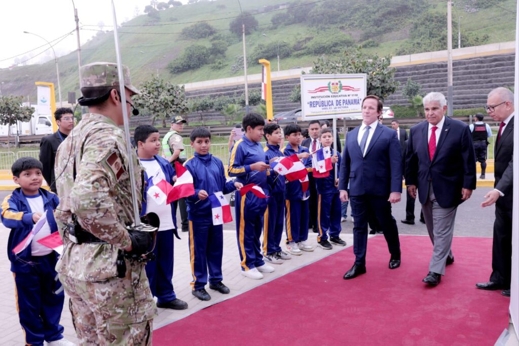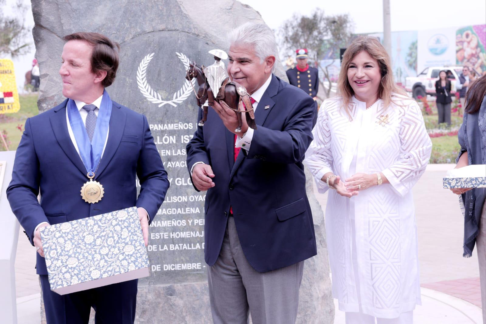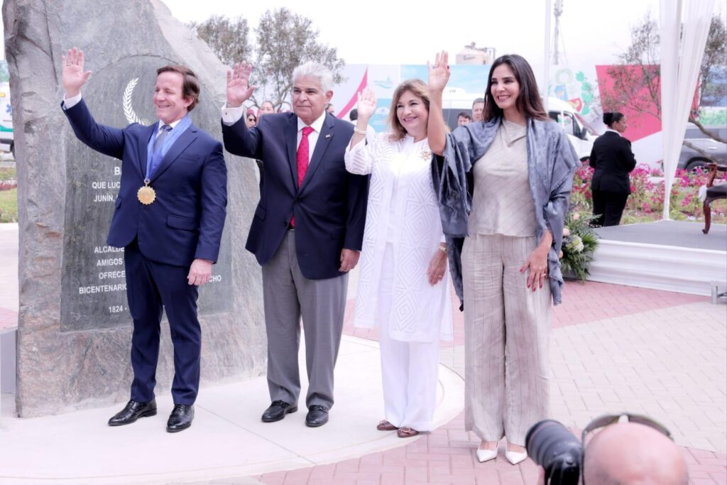 El presidente de la República, José Raul Mulino, participó hoy en la inauguración del Parque del Istmo de Panamá, en el distrito de Magdalena del Mar, en Lima, Perú, en un evento en el que fue recibido con los más altos honores militares y un acto cultural que incluyó danzas peruanas y panameñas como muestra de la relación entre ambos países.Acompañado de la primera dama, Maricel Cohen de Mulino, el mandatario recibió las llaves de la ciudad del distrito de Magdalena del Mar, por parte del alcalde, Francis Allison Oyague